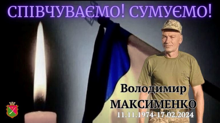 За інформацією Менської міської ради, 17 лютого 2024 року біля населеного пункту Білогорівка, що на Луганщині, загинув житель Осьмаків Володимир Максименко 1974 року народження.