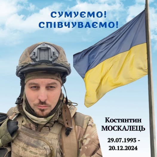 Менщина знову у жалобі. 20 грудня під час виконання бойового завдання в Курській області загинув Костянтин Москалець, наш земляк, воїн-захисник України, 1993 року народження.