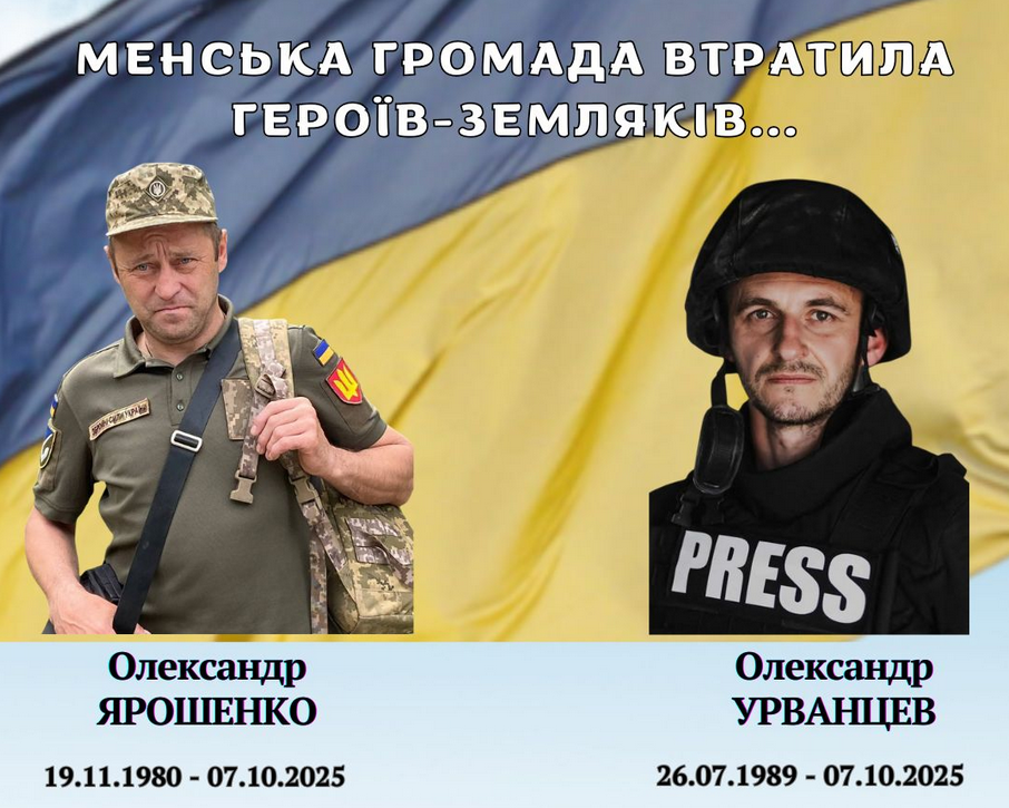 Менська громада знову у скорботі. 15 та 16 жовтня відбудуться церемонії прощання з двома захисниками — Олександром Ярошенком та Олександром Урванцевим, які віддали своє життя за Україну.