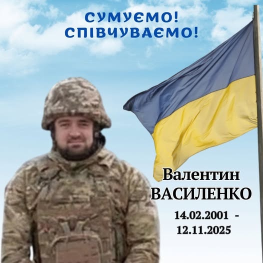 Менська міська територіальна громада сповістила трагічну звістку — у боях за Україну загинув їхній земляк, менянин Валентин Василенко (14 лютого 2001 року народження).
