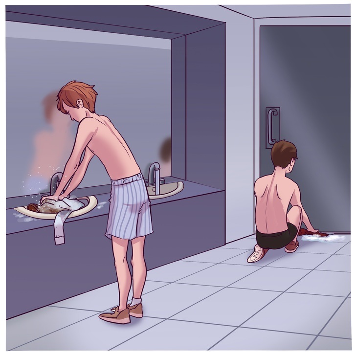 Якщо евакуюватися не вдалося, використовуйте туалетну кімнату. На ручці дверей на вході залиште одяг — прив’яжіть шарф або повісьте куртку. Для пожежників це знак, що всередині хтось є.